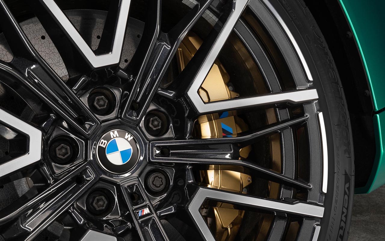 제동 시스템은 M 컴파운드 브레이크가 기본 장착되며 전륜 브레이크 캘리퍼는 6피스톤이다. 디스크 사이즈는 전륜 410, 후륜 398mm다. 옵션 사양으로 M 카본 세라믹 브레이크를 선택할 수 있는데 캘리퍼는 황금색으로 도색되며 디스크 사이즈는 420mm로 확대된다. 무게는 무려 25kg이나 가벼워진다.